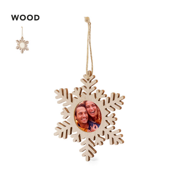 Elegantes adornos navideños con portafotos fabricados en suave madera. Incluye ventana para fotografías en tamaño 4×4 cm y accesorio para colgar en yute natural. Disponible en 3 originales diseños: Copo de Nieve, Árbol de Navidad y Estrella. Presentado en bolsa individual reciclada. Elaborado con elementos vegetales para así fomentar la utilización de materias primas naturales y reducir las emisiones contaminantes. Fotos: 4 x 4 cm