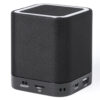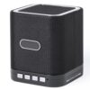 Compacto altavoz de conexión Bluetooth® en elegante acabado de color negro con accesorioss en plateado. Ofrece 3W de potencia, tiene función de manos libres, una ranura para tarjetas micro SD de hasta 32 GB de capacidad y entrada auxiliar de línea mediante conexión jack de 3,5mm. Compatible con iOS y Android, incluye cable de carga mini USB, cable auxiliar jack de 3,5mm y viene presentado en atractiva caja de diseño. Con soportes de goma antideslizantes en la base. Conexión Bluetooth. Potencia Sonido 3W. Batería 500 mAh