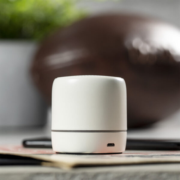 Compacto altavoz de línea nature, con conexión Bluetooth® 5.0 y batería de litio. Carcasa en ABS reciclado (RABS) y con certificación RCS, que garantiza el origen reciclado del mismo. 3W de potencia, compatible con iOS y Android. Incluye cable de carga micro USB y base antideslizante. Presentado en atractiva caja de diseño eco. Incluye manual de instrucciones en español e inglés. Conexión Bluetooth. Potencia Sonido 3W. Batería 400 mAh