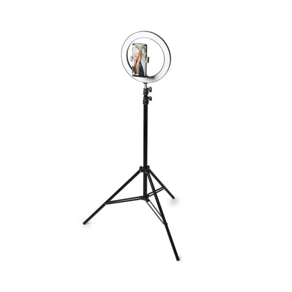 Set de iluminación. Incluye anillo de luz, trípode de mesa, y trípode de suelo con altura regulable hasta 180cm. 120 ledes, con 3 posiciones de iluminación y 10 niveles de intensidad de luz regulable. Alimentación mediante conexión USB. Cable con controlador y disparador remoto incluidos. Presentado en atractiva caja de diseño. Extensible. 120 Ledes. 3 Posiciones de Luz. Intensidad de Luz Regulable. Conexión USB