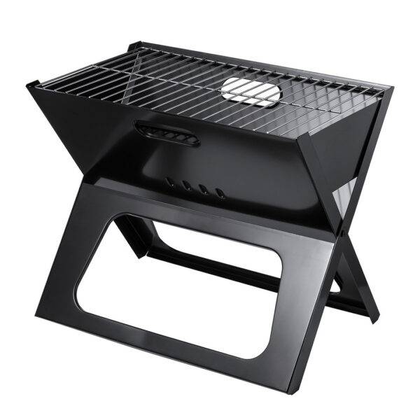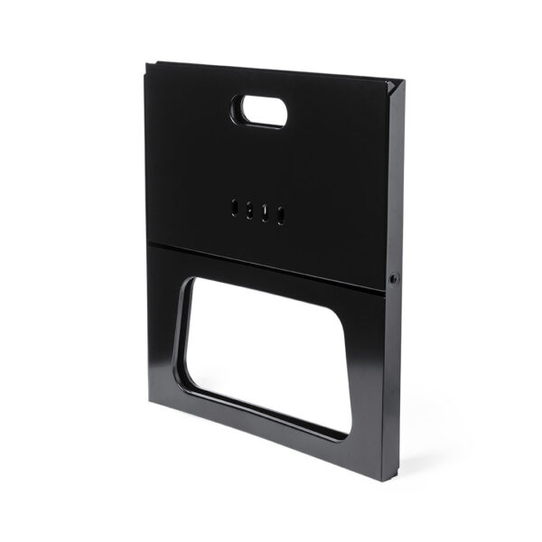 Barbacoa plegable fabricada en resistente metal de acabado en negro. Con cómodas asas y parrilla, de fácil plegado y tamaño compacto. Presentada en atractiva caja individual de diseño. Plegable