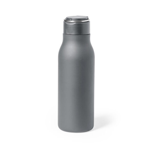 Bidón de 600 ml de capacidad, fabricado en acero inox. Tapón a rosca a juego libre de BPA, con anilla de transporte integrada, plegable y de acabado cromado. Disponible en variada gama de colores satinados y presentado en caja individual de diseño kraft. 600 ml