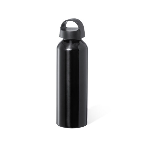 Bidón de 800 ml de capacidad, fabricado en aluminio de acabado brillo. Tapón en negro a rosca y con asa integrada, libre de BPA. Disponible en variada gama de colores y presentado en caja individual de diseño kraft. 800 ml