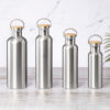 Bidón térmico de 500 ml de capacidad, fabricado en acero inox de doble pared y acabado mate. Incluye original tapón a rosca en acero inox, con detalle de bambú y asa integrada. Libre de BPA y presentado en caja individual de diseño kraft. 500 ml