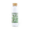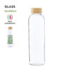 Bidón transparente de cristal de 500 ml de capacidad, especialmente diseñado para marcaje en sublimación. Con tapón a rosca en bambú, libre de BPA. Presentado en atractiva caja de diseño. 500 ml. No apto para sublimación