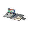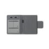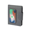 Carpeta/bloc multifunción fabricada en poliéster 300D RPET, elaborado a partir de plástico reciclado, para así fomentar la reutilización de residuos plásticos y ayudar a la sostenibilidad del planeta. Con cierre magnético y etiqueta interior con distintivo RPET. Incluye cargador inalámbrico 10W integrado en portada, con fijación magnética para poder usar el dispositivo mientras se produce la carga del mismo e incluyendo anillo adhesivo, válido para todos los dispositivos con tecnología Magsafe y Qi.Batería integrada de 5.000 mAh de capacidad de carga, con puerto Tipo C de entrada/salida y LEDs indicadores de estado de carga, con cable incluido.Interior con soporte para smartphone y multitud de compartimentos para tarjetas, incluidos soporte para bolígrafo y bloc A5 con 65 hojas de disposición a una raya. Presentada en atractiva caja individual de diseño.Las capacidades mostradas en todas nuestras baterías auxiliares externas son reales, incorporando todas ellas baterías de grado A y no recicladas, con una vida útil de al menos 500 ciclos de carga y según normativa CE. Además, están fabricadas conforme a los estándares RoHS y en cumplimiento con los siguientes requisitos de seguridad: Sistema de protección contra sobrecarga del power bank. Sistema de protección contra descarga completa que proporciona una mayor durabilidad del power bank. Sistema de bloqueo para evitar cortocircuitos. Sistema de transferencia de carga constante, acorde con la capacidad del dispositivo de destino. Inalámbrico 10W. Power Bank 5000 mAh. Salida USB. Entrada Micro USB. Bloc 65 Hojas