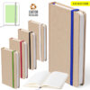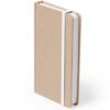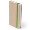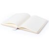 Bloc de notas con tapas de suave tacto acabadas en resistente cartón natural. De 100 hojas lisas, con elástico de sujeción y marcapáginas de tela a juego. Portada Rígida. 100 Hojas