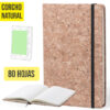 Bloc de notas ecológico en corcho natural y con tapas rígidas. De 80 hojas lisas con acabado natural, elástico de sujeción y marcapáginas de tela en sobrio color negro. Portada Rígida. 80 Hojas