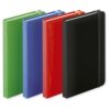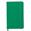 Bloc de notas con tapas de suave tacto, acabado en polipiel y en desenfadados colores. Con 100 hojas de distribución a una raya, elástico de sujeción y marcapáginas de tela a juego. Portada Rígida. 100 Hojas