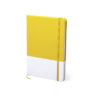 Bloc de notas en desenfadado diseño bicolor, con suaves tapas en polipiel de acabado rígido. 100 hojas con disposición a una raya, con marcapáginas de tela y elástico de cierre a juego. Disponible en variada gama de colores. Portada Rígida. 100 Hojas