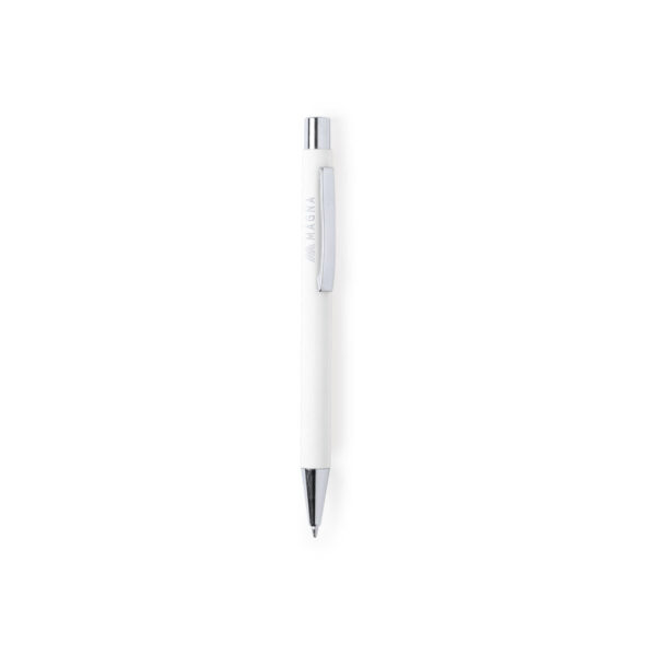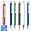 Original bolígrafo de mecanismo pulsador en elegante diseño bicolor. Con cuerpo de aluminio en tacto goma de acabado mate. Especialmente diseñado para marcaje en láser y mostrar el logotipo en tono plateado. Clip, parte superior y punta en plateado. Disponible en variada gama de colores, con cartucho jumbo y tinta azul. Carga Jumbo