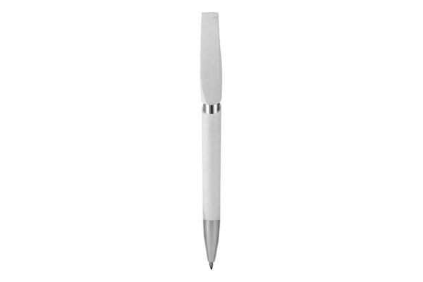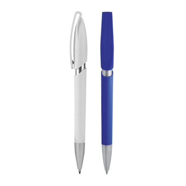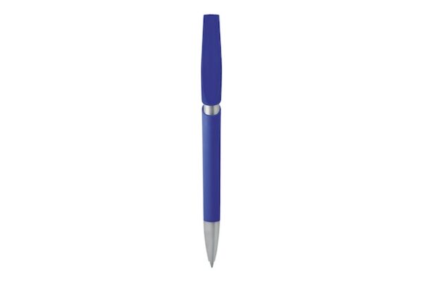 Plástico. Apertura retráctil con pulsador. Clip plástico, color plata en puntera y cuerpo. Tinta azul.