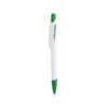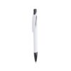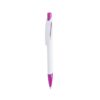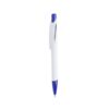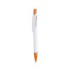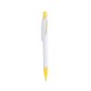 Bolígrafo de mecanismo pulsador de atrevido diseño bicolor con accesorios en vivos colores sólidos y cuerpo de suave acabado en color blanco sólido. Con original clip curvado a y punta a juego. Tinta azul.