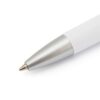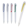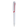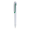 Bolígrafo de mecanismo pulsador de atrevido diseño tricolor con accesorios en vivos colores y cuerpo de suave acabado en color blanco sólido. Con original clip curvado a juego y cómoda empuñadura. Tinta azul.