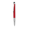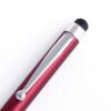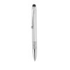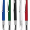 Bolígrafo puntero de mecanismo giratorio de elegante diseño bicolor con accesorios en color plateado brillante y cuerpo de suave acabado sólido en vivos colores metalizados. Con clip de aluminio y empuñadura de original diseño de anillas. Puntero en negro y tinta azul.