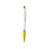 Bolígrafo puntero de colorido diseño, con cuerpo en elegante color blanco sólido. Empuñadura y puntero a juego, con detalles cromados. Tinta azul.