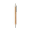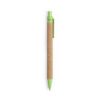 Bolígrafo de línea nature con mecanismo pulsador. Combinación de cuerpo en corcho natural y accesorios en caña de trigo y ABS , para así fomentar la utilización y reciclado de materias primas, reduciendo así las emisiones contaminantes. Disponible en variada gama de colores, con tinta azul. Distintivo Wheat Straw en la parte superior del bolígrafo.