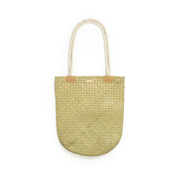 Bolso de desenfadado diseño en paja y con forma rectangular, un must. De gran capacidad y con originales asas largas en algodón, reforzadas en PU. Con superficie para personalización en madera, especialmente diseñada para marcaje en láser.