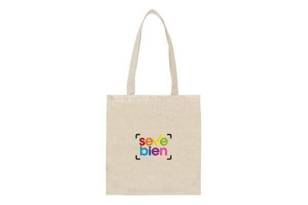 42 x 38 cm. 100% Algodón. 103 g. Bolsa reutilizable. Manijas cosidas.