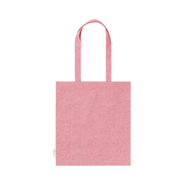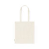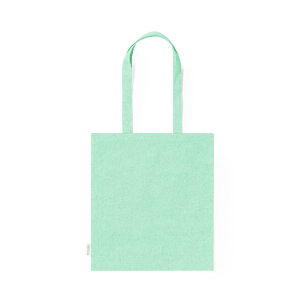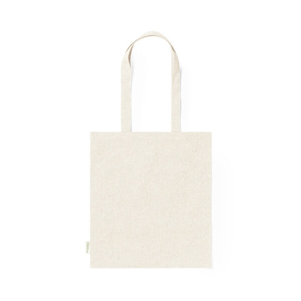 Bolsa fabricada en material100% algodón reciclado de 140g/m2. Certificación GRS (Global Recycled Standard / Estándar de Reciclaje Global), que garantiza el origen reciclado del material usado para fabricar el producto. De acabaco cosido, con asas largas reforzadas de 70 cm y disponible en variada gama de colores. Resistencia hasta 8kg, incluida etiqueta con distintivo de algodón reciclado.