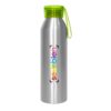 Novedades, Tazas, jarras y termos, TodosØ 6,6 x 23 cm. Capacidad 600 ml. Aluminio. Cuerpo color plata, tapa de color traslucida con tira de silicona (de 8 cm) del mismo color. Ideal para hiodratarte todos los días. Presentación en caja de regalo.