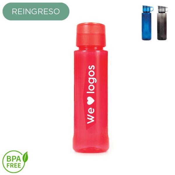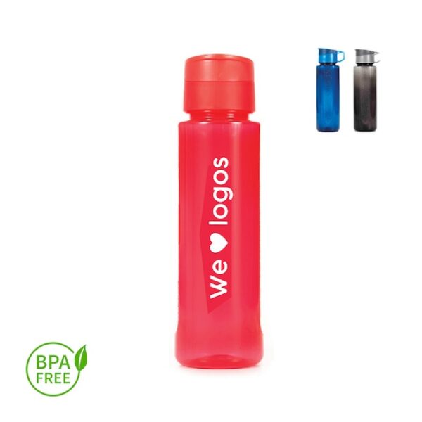 Botella de PP con Tapa con cierre hermético. Cuenta con un agarre en la tapa para su transporte. Medida: 25 cm x 7,1 cm. Capacidad: 720 ml. Producto libre de BPA.