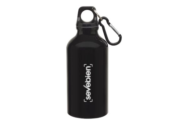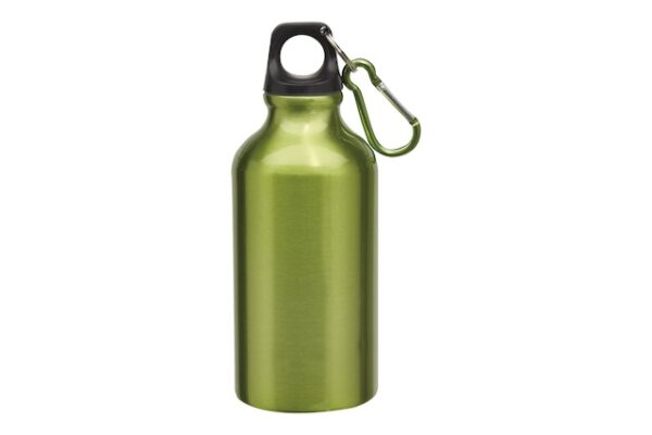 Ø 6,5 x 17,5 cm. Capacidad 400 ml. Aluminio. Botella de aluminio con cierre de plástico y carabina metálica.