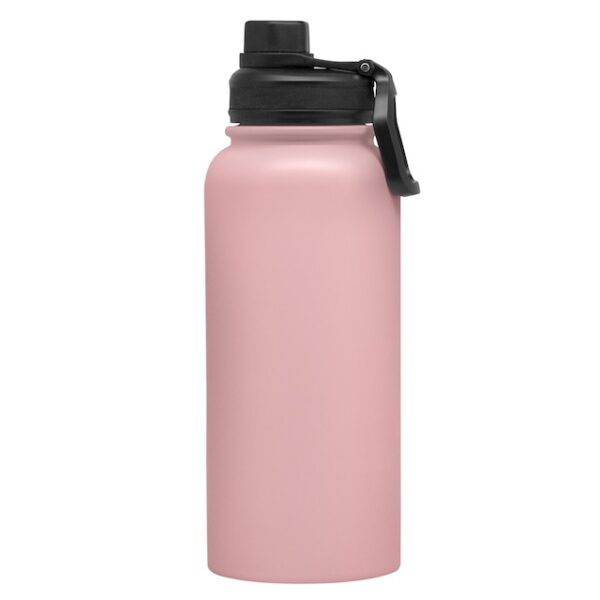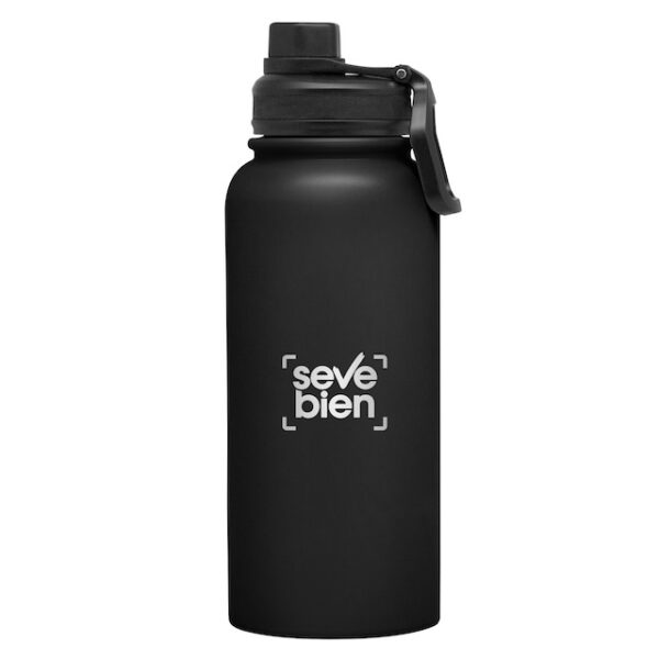 Ø 9 x 26 cm. Capacidad 1000 ml. Acero inoxidable. Botella deportiva doble pared, sellada al vacío. Interior en acero 304, exterior en acero 201. Tapa con anillo de silicona, boquilla con cierre a rosca antiderrame y manija plástica para su agarre. Mantiene hasta 12 hs la temperatura de las bebidas calientes y 24 hs de las bebidas frías. Presentación en caja de regalo.