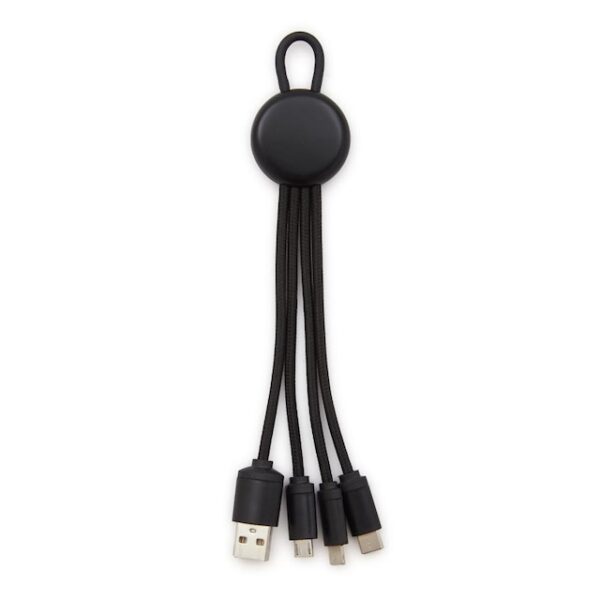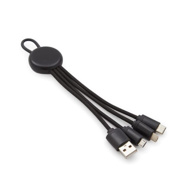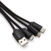 Novedades, Tecnología, TodosCable 3 en 1 color negro, blanco o gris, con una longitud de 17 cm. Es el accesorio perfecto para mantener tus dispositivos siempre cargados y listos para usar. Incluye un cable de entrada USB A y 3 de salida TIPO C / LIGHTING / MICRO B, lo que te permite cargar dispositivos con diferentes tipos de entradas. Realizado en plástico reciclados: RABS y RTPE.