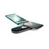 Cargador inalámbrico para carga simultánea de hasta 2 dispositivos. En elegante color negro, con luz led interior y un recubrimiento exterior especialmente diseñado para marcaje en láser, con el que conseguirá que su publicidad o marca quede iluminada con luz blanca. Base antideslizante y compatible con dispositivos equipados con tecnología de carga inalámbrica. Presentado en atractiva caja de diseño. Cable USB incluido. Luces Led. Inalámbrico 5W