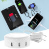 Cargador inalámbrico circular de 3.100mAh de capacidad de carga. Cuerpo en elegante acabado de color blanco. Con superficie y base antideslizante e indicador led de estado de carga. Incluye 3 salidas USB: 2×2.1A y 1x1A. Compatible con dispositivos equipados con tecnología de carga inalámbrica y presentado en atractiva caja de diseño. Inalámbrico 5W. 3 Salidas USB
