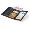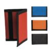 Cartera en diseño tríptico en resistente poliéster 300D en variada gama de vivos colores y cierre exterior de velcro. Interior con billetero, monedero con cierre de cremallera, compartimento transparente para documentación bolsillo de redecilla y 3 compartimentos para tarjetas.