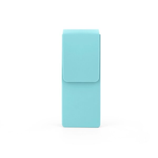 7,5 x 18,5 x 2,7 cm. Silicona. Cartuchera de silicona extra suave. Tiene una solapa imantada y es muy canchera para llevarla a todos lados. Presentación en caja de regalo.