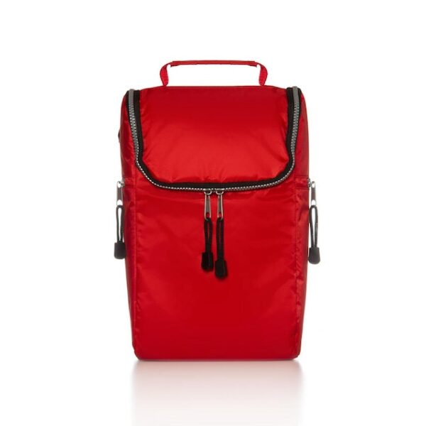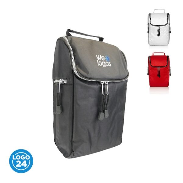 NovedadesCooler confeccionado en tela Nylon 600D, interior térmico forrado en PVC gris. Bolsillos laterales. Apto para llevar botellas, termos y otros. Colores: Negro, Blanco, Azul y Rojo. Medidas: 28 alto x 20 ancho x 14 base cm. Capacidad: 8 Lts. LOGO24: Producto disponible para el servicio de logueo en 24 horas respetando unidades mínimas de logueo y 200 unidades máximas. Consultar términos y condiciones del servicio