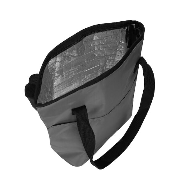 NovedadesCooler de Polyester 420D con compartimiento principal superior y bolsillo frontal. Posee interior en Aluminio y PE foam. Medidas: 37 x 24 x 13 cm. Capacidad: 11,5 Litros. LOGO24: Producto disponible para el servicio de logueo en 24 horas respetando unidades mínimas de logueo y 200 unidades máximas. Consultar términos y condiciones del servicio.