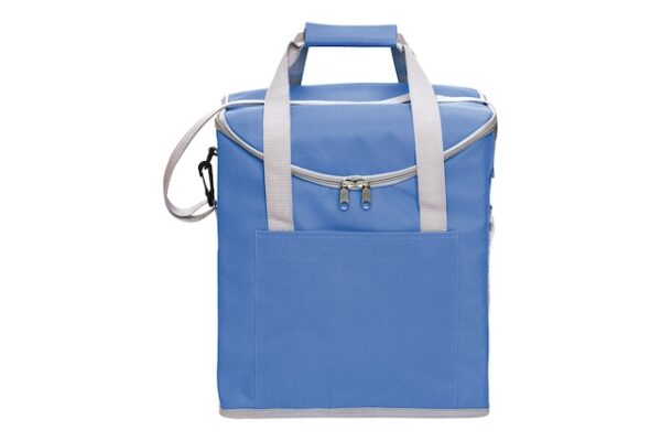 Novedades30 x 34 x 19,5 cm. Capacidad 37 litros. Poliéster. 600D Lonchera térmica con recubrimiento interior metalizado. Un bolsillo frontal y dos bolsillos laterales de red. Correa tipo bandolera y dos manijas reforzadas con cierre de velcro. Capacidad hasta 6 botellas de 2,5 litros