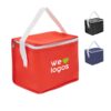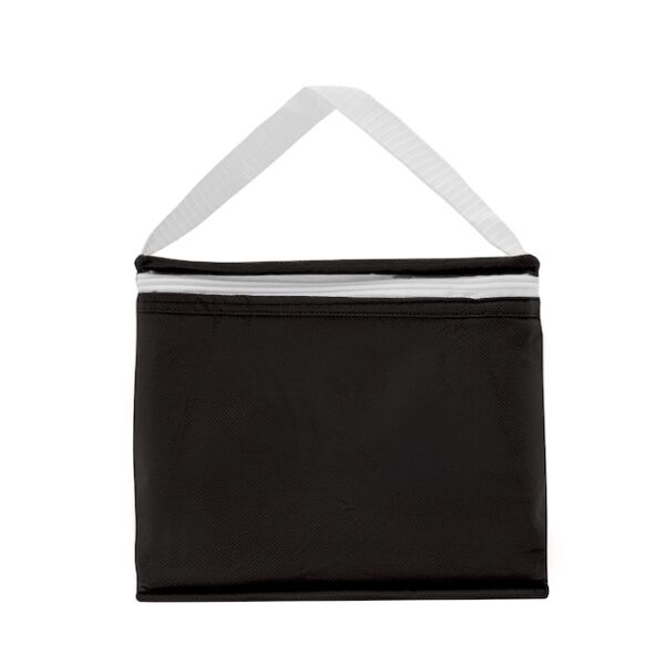 Realizado en Friselina (NON WOVEN). Interior en aluminio y PE Foam 2mm. Tiras para sujetar. Compartimiento principal superior. Medidas: 20 x 14 x 15,5 cm. Capacidad 4,5 Lts.