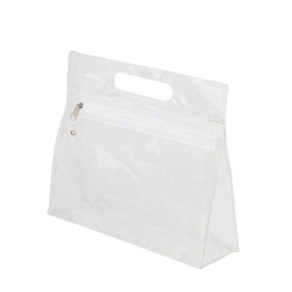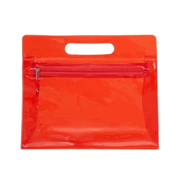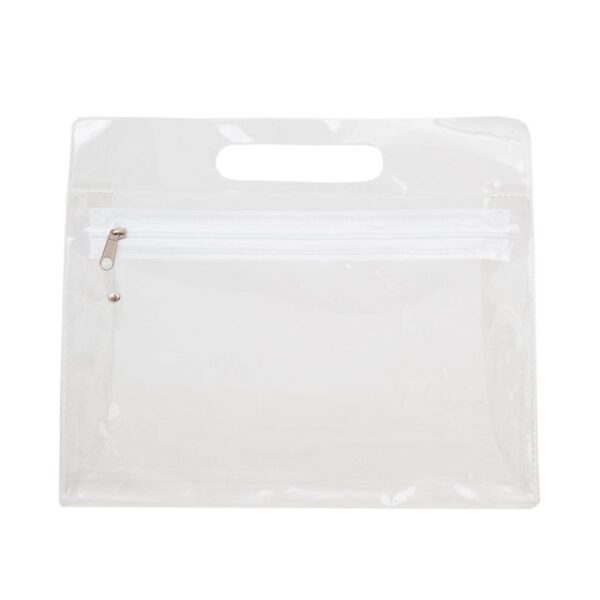Necessaire de PVC transparente con cierre. Cuenta con fuelle, permitiendo mayor capacidad de guardado. Medidas: 25×20,5x7cm.