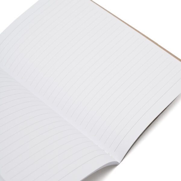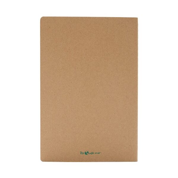 Cuaderno de tapa blanda con 40 hojas rayadas de 70g. Medidas: 12 x 21 cm. Reuseme. Incluye Gift Box confeccionada en cartulina Kraft.