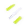 Cuchillo 2 en 1 con pelador en cerámica. Con capuchas de acabado translúcido en variada gama de divertidos colores.