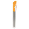 Cutter con cuerpo de aluminio troquelado y carcasa transparente. Con mecanismo de bloqueo de seguridad y capucha extraíble para ajuste de corte de cuchilla.