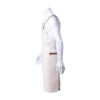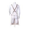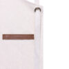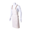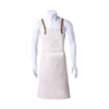 Delantal de alta calidad en resistente material 100% algodón canvas de 340g/m2, con costuras reforzadas. De corte por debajo de la rodilla, con cintas en resistente polipiel y triple ajuste: cuello, espalda y cintura. Con bolsillo frontal, accesorio en polipiel y remaches metálicos de refuerzo.