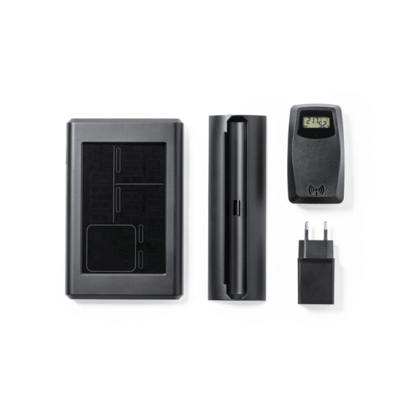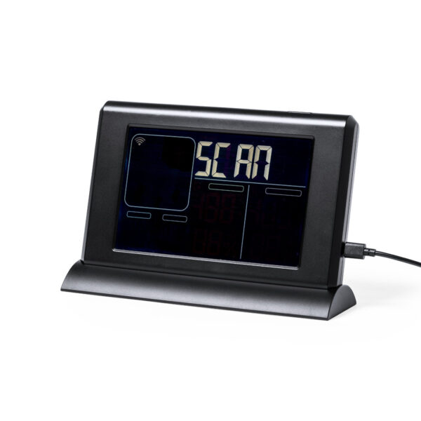 Estación meteorológica premium multifunción, fabricada en resistente ABS de acabado negro satinado. Incluye pantalla retroiluminada, de fácil lectura y con gráficos en color. Con sensor inalámbrico para temperatura/humedad exterior y sensor integrado para temperatura/humedad interior. Funciones alarma y calendario, con APP disponible -compatible con iOS/ Android- para control remoto a través de red WiFi y funciones extra. Adaptador de corriente y cable USB incluido de 1 m de largo, con soporte para montaje en la pared. Sensor externo con alimentación a pilas (2xAAA no incluidas). Presentación en caja individual de diseño kraft, con manual de instrucciones en español e inglés. Temperatura Interior/ Exterior. Adaptador Conexión USB