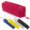 Estuche en resistente poliéster 600D en variada gama de vivos colores. Con cierre de cremallera y tirador a juego para fácil apertura.