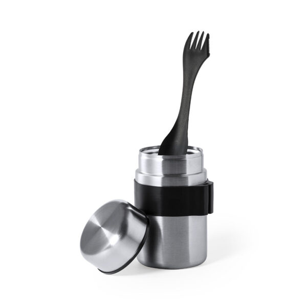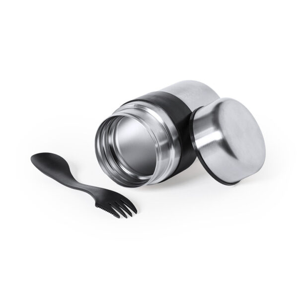 Fiambrera fabricada en acero inox y de 500 ml de capacidad. Cerre de seguridad con tapadera estanca en acero inox. Presentada en atractiva caja individual de diseño. 500 ml