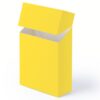 Funda para cajetilla de tabaco de divertidos diseños emoji en llamativo color amarillo. En cartón de acabado brillo con emoji en parte trasera y presentación plegada.