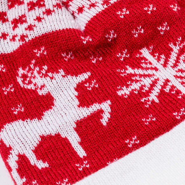 Original gorro con motivos navideños. Un regalo ideal para combatir el frío y agregar un toque de calidez y diversión a los looks más navideños. Fabricado en suave poliéster acrílico y pom pom a juego. Presentado en una bolsa individual reciclada. Cuenta con zona especial para el marcaje.
