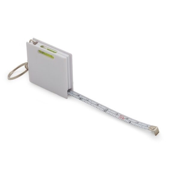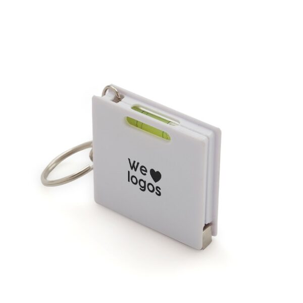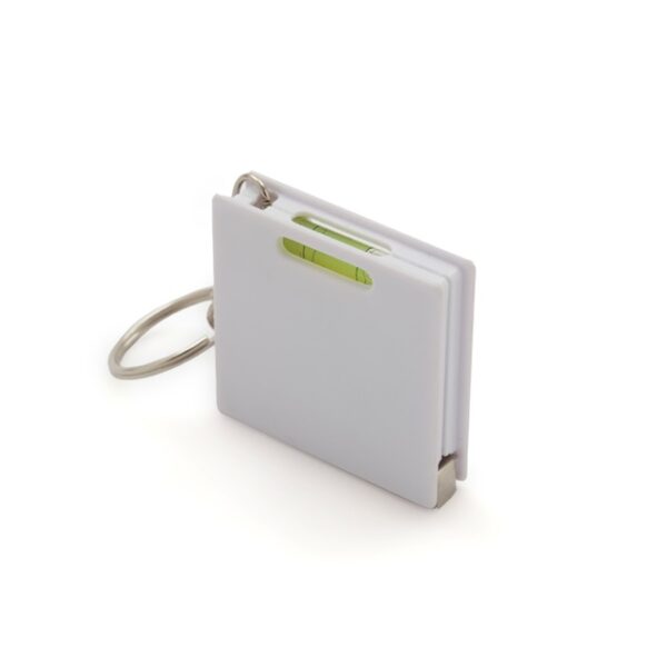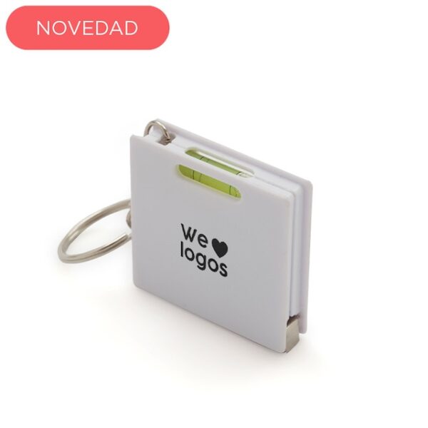 Llavero medidor de superficies realizado en ABS. El producto viene en una bolsa de PLA 100% compostable. Dimensiones: 4.2 x 4.2 x 0.9cm.