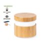 Lámpara multifunción fabricada en bambú. Con altavoz Bluetooth® 5.0 de 3W de potencia y cargador inalámbrico de 15W. 2LEDs. Compatible con dispositivos móviles de carga inalámbrica, con cable cargador tipo C y viene presentada en una atractiva caja de diseño kraft. Disponible manual de instrucciones en español e inglés. Elaborado con elementos vegetales para así fomentar la utilización de materias primas naturales y reducir las emisiones contaminantes. 2 Ledes. Altavoz Conexión Bluetooth. Potencia Sonido 5W. Batería 400 mAh. Cargador Inalámbrico 15W. Conexión USB