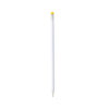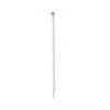 Elegante lápiz con cuerpo acabado en color blanco y goma en variados colores. Mina de color negro y punta sin afilar